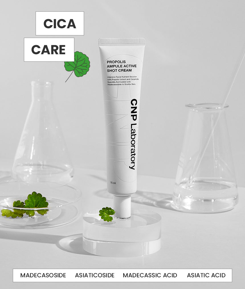 Propolis cream containing ampoule for moist and healthy skin from moisturizing to soothing Gently soothes irritated skin with 4 types of cica ingredients *4 kinds of cica ingredients: madecassoside, asiaticoside, madecassic acid, asiatic acid The non-sticky, moist texture of the cream is easily absorbed into the skin, giving it a healthy glow and moisture.